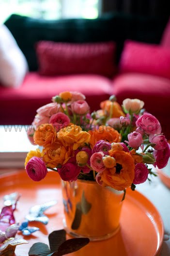 Love these interiors of Sydney artist Dorryce Rock - featured in an old copy of H&G that I just came across again today. Dorryce loves bold, feminine colours so custom mixed a pinky red for the walls teamed with a grape carpet. Her interior features many of her paintings and it all